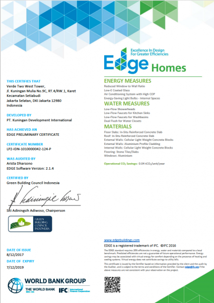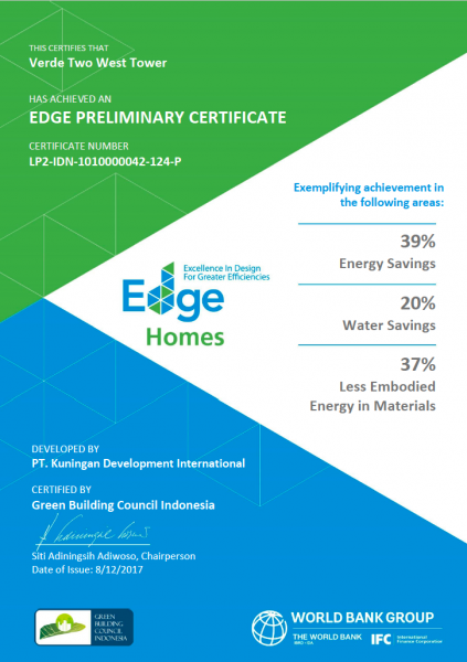 EDGE certificate awarded to our Indonesian project Verde Two West Tower