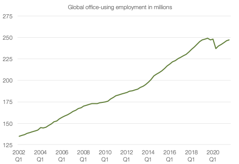 Figure 1: Office-using employment is on a long-term rise