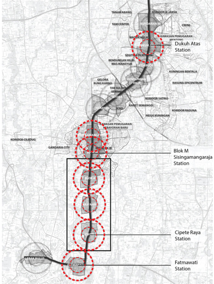 Jakarta MRT has determined several areas within a radius of up to 700-m from each transit station as TOD area as shown in Figure 2. Most projects located along the MRT line are office towers and upper-middle to upper class residential towers.